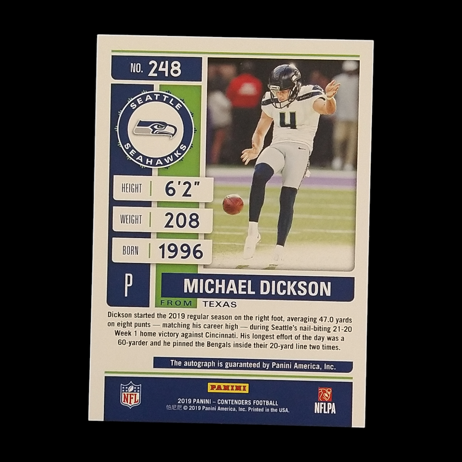 2019 Panini Contenders Michael Dickson Championship Rookie Ticket Autograph Serial # /49